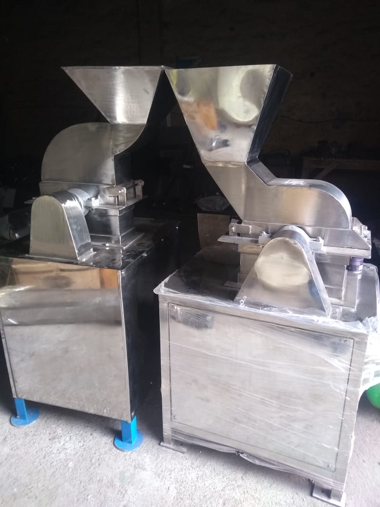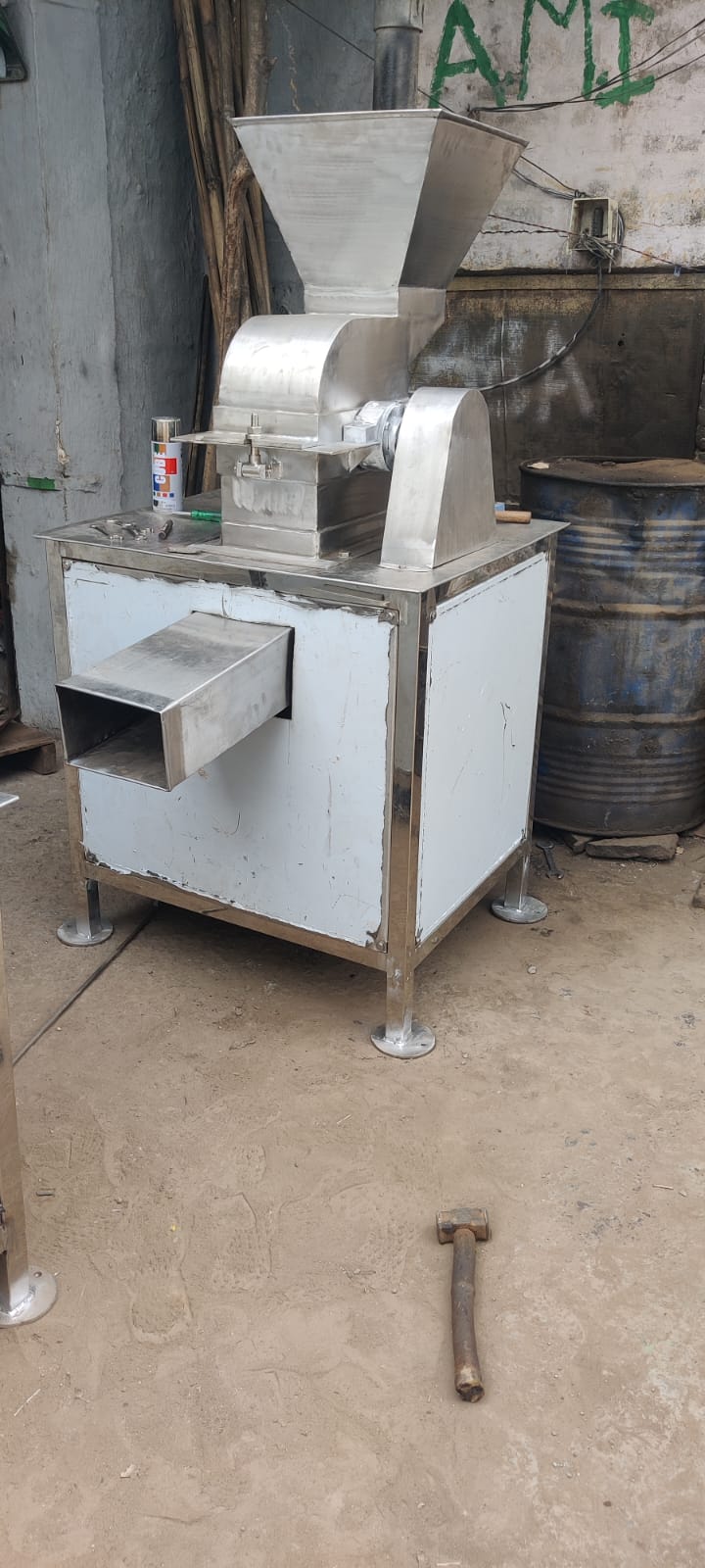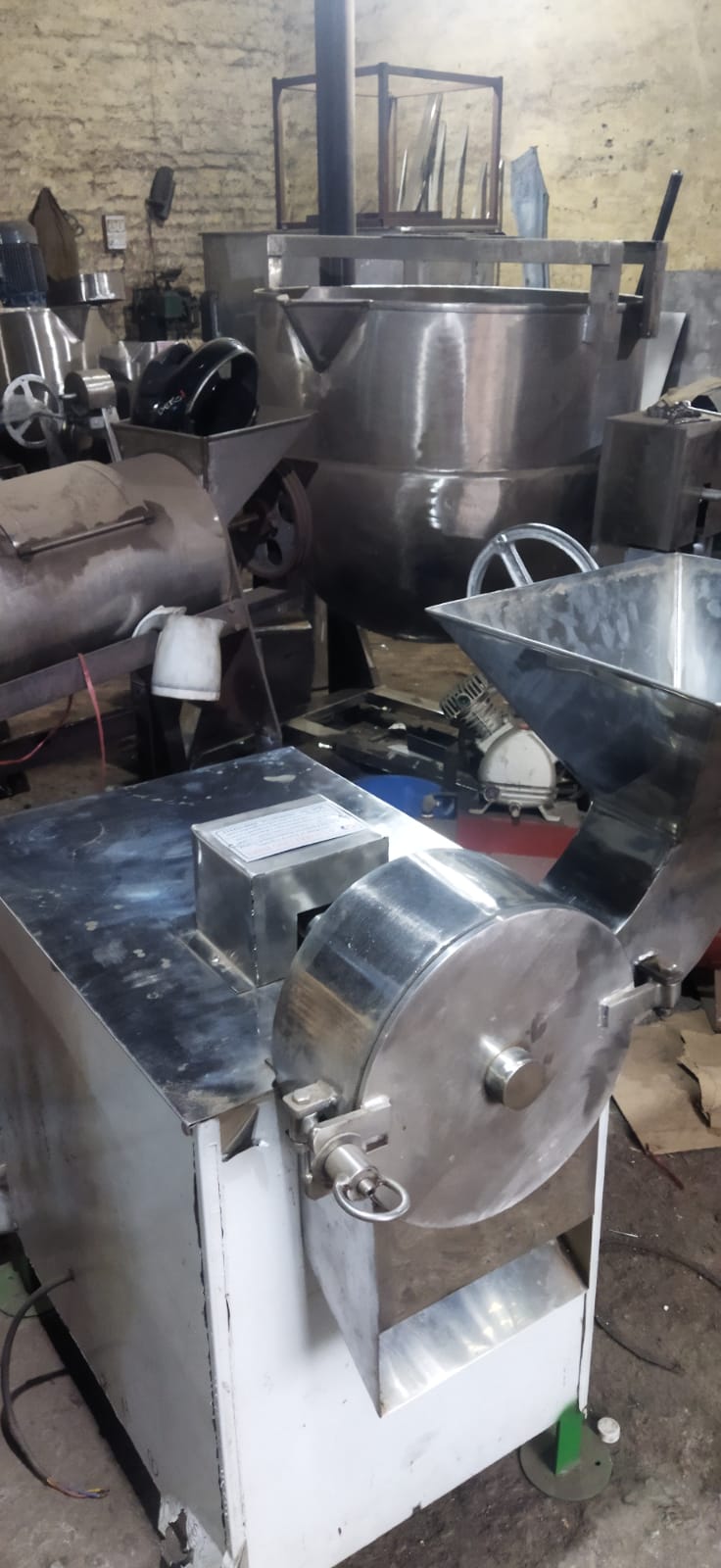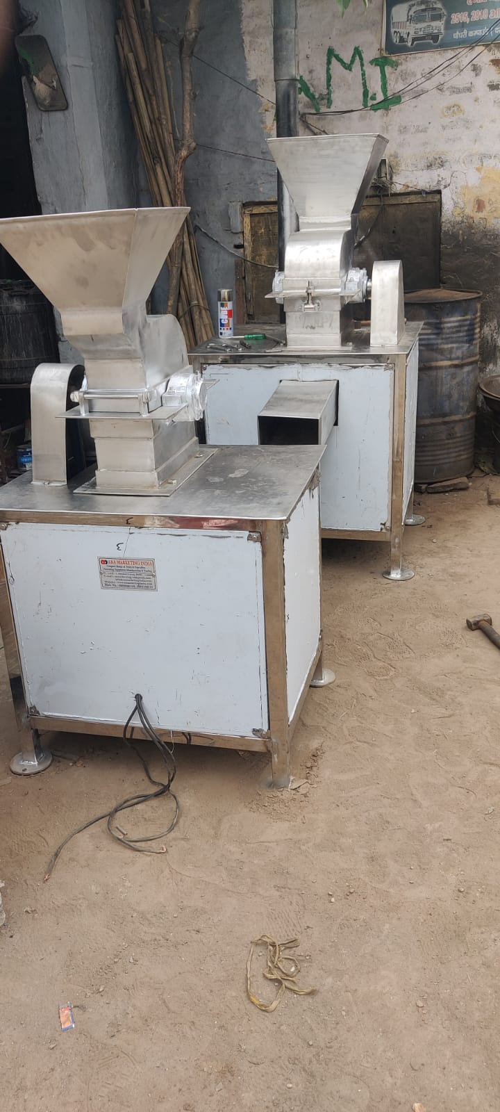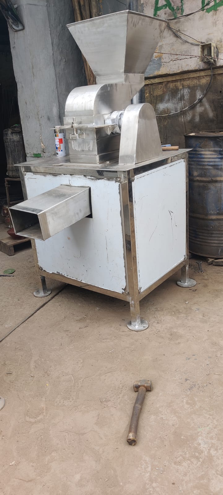 PULPRIZER CUM FRUIT CRUSER: Specially designed to make paste/Pulp of Vegetables/Fruits like Aloe Vera, CHILLI/ GINGER/ GARLIC/ ONION/ CARROT etc. All contact parts made of Stainless Steel-304. Complete with SS cladding and covering with Stainless Steel 202 Frame mounted on Stainless Steel 202 Fitted with SS grinding head with suitably designed grinding head. The unique feature of the machine is that the grinding head is water jacketed to facilitate low temperature of the grinding head while the grinding process. This ensures high quality of the material and avoids natural pungency/flavor/colour losses. Fitted with 2mesh (1/16, 1/8) for different mesh grinding option. Uniquely designed crushing head. Works on high RPM crushing principles @1400RPM, thus ensuring high fibrous products are also evenly grinded. With 5Hp/3Ph Motor. (Make: Crompton/Havelles) Capacity 200/600Kg Per Hr+/-