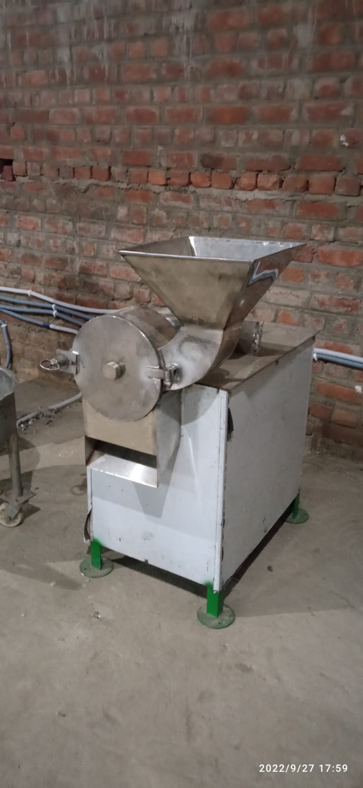 AAMIFM2- FRUIT MILL/CRUSHER SENIOR: Mounted on a Mild Steel stand with 2Hp/3Ph motor. All contact parts made of stainless steel (AISI 304). Capacity 300 to 600Kg per hour. The product is fed into hopper and Stainless Steel rotor, which crushes it against the Stainless Steel blades to Crushes the product AAMIFP2- PULPER: All contact parts made of Stainless Steel AISI-304. Mounted on Mild Steel frame duly fitted with 2Hp/3Ph motor. Along with One sieve and One set of Nylon Brush. Capacity of is 200 to 600Kg tomato/hrs. (Input). AAMIP-PULPRIZER CUM FRUIT CRUSER: Specially designed to make paste/Pulp of Vegetables/Fruits like Aloe Vera, CHILLI/ GINGER/ GARLIC/ ONION/ CARROT etc. All contact parts made of Stainless Steel-304. Complete with SS cladding and covering with Stainless Steel 202 Frame mounted on Stainless Steel 202 Fitted with SS grinding head with suitably designed grinding head. The unique feature of the machine is that the grinding head is water jacketed to facilitate low temperature of the grinding head while the grinding process. This ensures high quality of the material and avoids natural pungency/flavor/colour losses. Fitted with 2mesh (1/16, 1/8) for different mesh grinding option. Uniquely designed crushing head. Works on high RPM crushing principles @1400RPM, thus ensuring high fibrous products are also evenly grinded. With 10Hp/3Ph Motor. (Make: Crompton/Havelles) Capacity 180/450Kg Per Hr+/- AAMSJKTT50TT- STEAM JACKETTED TILTING TYPE KETTLE: Mounted on a mild steel stand with tilting arrangement through worm gear/pinion. Jacket and pan made of 10/10swg.stainless steel 304. Complete with pressure gauge, safety valve, steam Trap, Drain Cock The kettles are double jacketed for maximum steam utilization and efficiency. Capacity 50 GALLONS 225 litres AAMSJKTTS10TTS- STEAM JACKETTED TILTING TYPE WITH SCRAPPER KETTLE: Mounted on a Stainless Steel Stand with tilting arrangement through worm gear/pinion. KETTLES TILTING TYPE WITH TUFLON SCRAPPER FITTED WITH GEARED MOTOR WITH 1HP/3Ph, ELECTRIC MOTOR COMPLETELY MADE OF STAINLESS STEEL Jacket and pan made of 10/10swg.stainless steel 304. Complete with pressure gauge, safety valve, steam Trap, Drain Cock The kettles are double jacketed for maximum steam utilization and efficiency. Capacity 50 GALLONS 225 litres AAMIVFM2- VACUUM FILLING MACHINE: Two filling heads, suitable for filling all sizes and types of bottles to a predetermined level. Capacity 10/15 bottles/minute. Suitable for filling all types of liquids to a predetermined level in glass, rigid HPDE & aluminum bottles with narrow necks. The machine is designed to accommodate Ketchup, Hot Syrups & is fitted with over flow glass jars. Mounted on Mild Steel Stand, Completely cladding made of Stainless Steel 304. And More items, in case any clarification please be Call us on +91 99990 20148, 9999102413